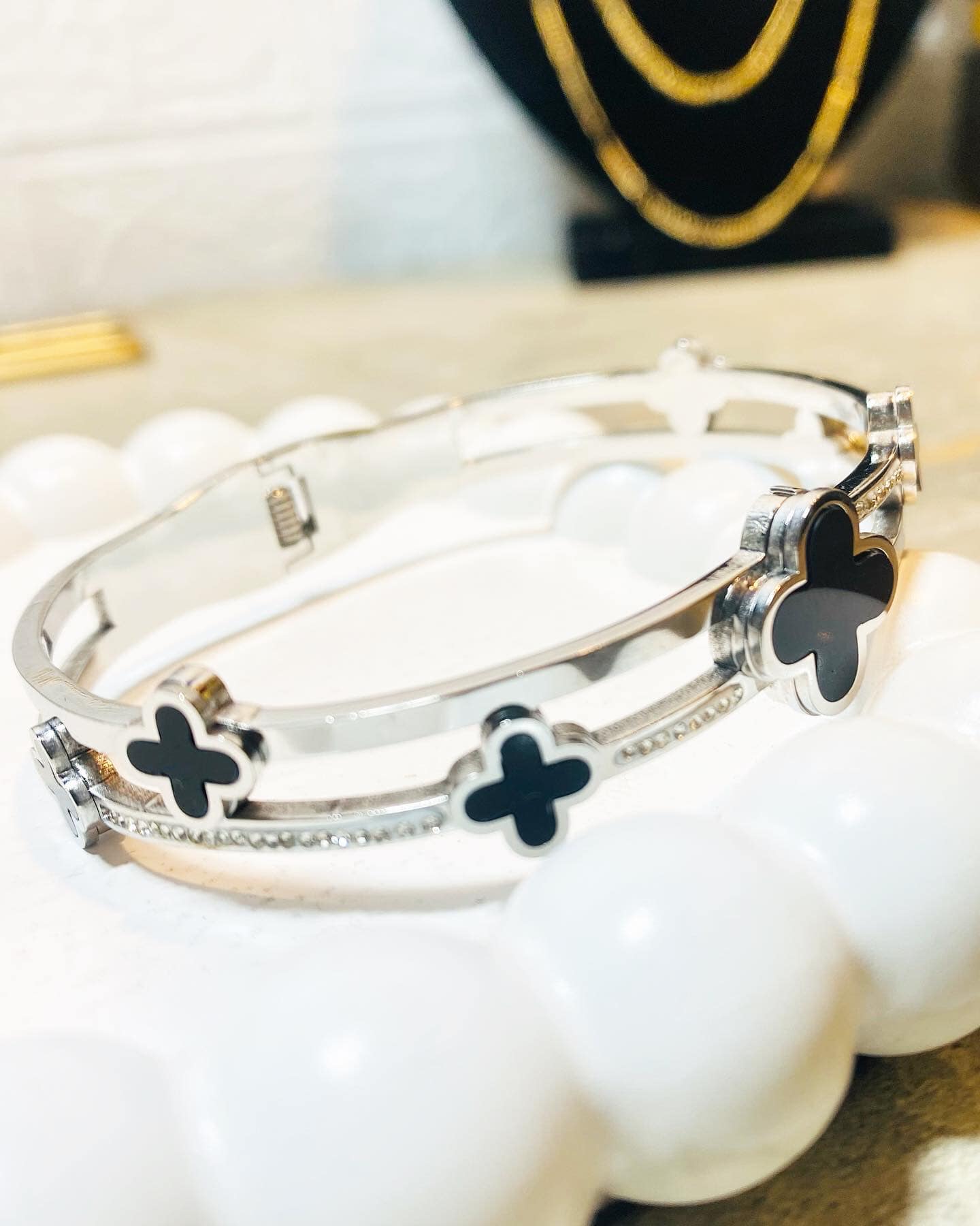 Bring luck and luxury to your wrist with this stunning Clover Silver Bangle. Crafted from high-quality silver, this elegant piece features the iconic four-leaf clover design — a symbol of luck, love, and positivity. Its sleek and modern finish makes it perfect for both casual wear and special occasions.